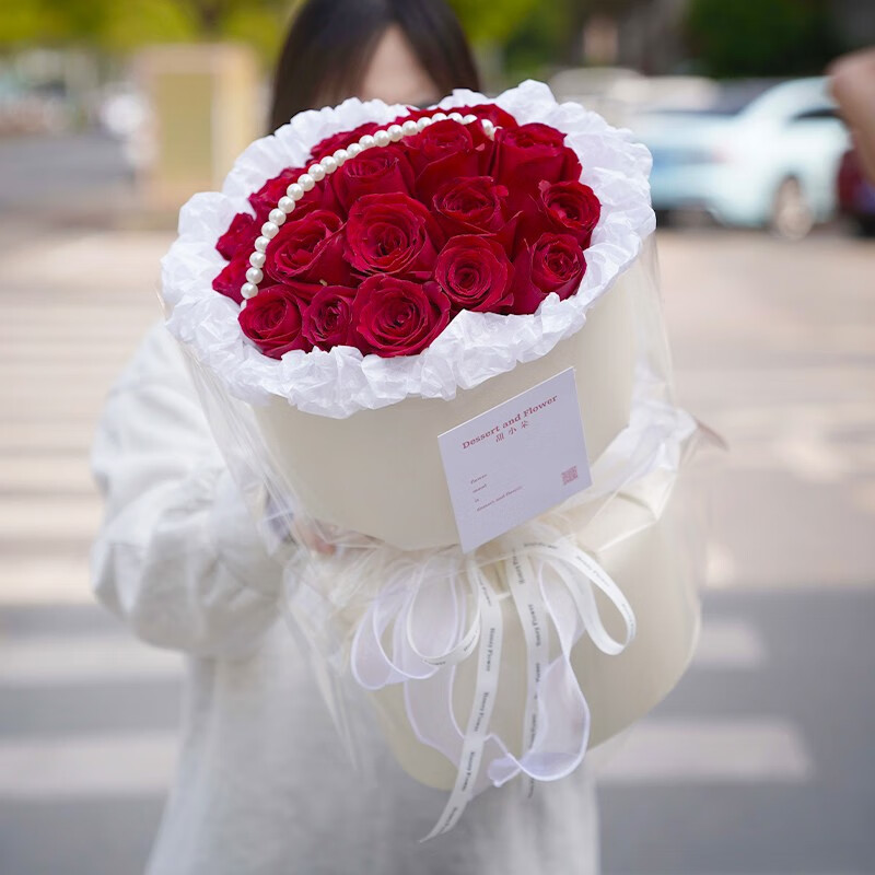 包装: 白色手搓纸内衬,白色硬纸外包,透明玻璃纸最外围装饰,小香风包装,红色大花结。