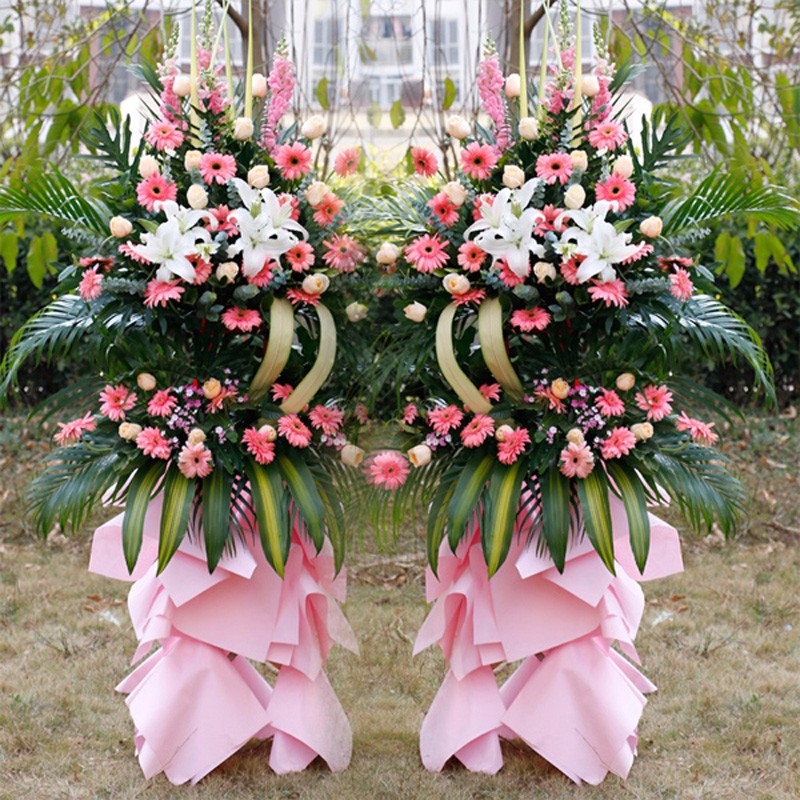花语: 由于包扎花篮的花艺师不同,可能在花篮的形式和搭配上与图片不完全一致,但我们保证鲜花的主花材品种、新鲜程度、数量、颜色与说明一致。