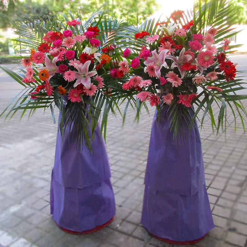 不错!!很满意!!卖家按着要求准时送到的,没有耽误花篮也好看,公司如果需要的话还会再来