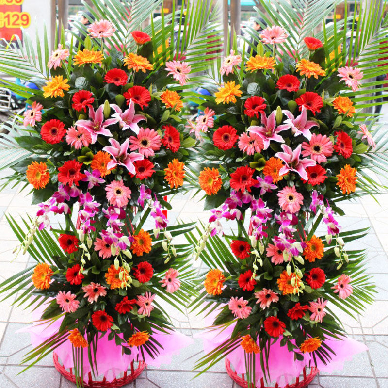 花篮很漂亮。花也很香,感谢店家及时送到。