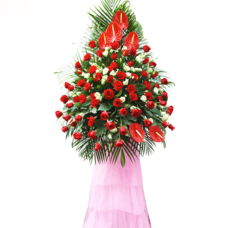 包 装:单个花篮价格(红玫瑰量比较大,红掌为珍贵花材,请尽量提前预定)