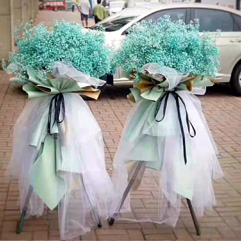 花材: 蓝色满天星,蓝色雾面纸内衬,白色网纱外包,黑色英文缎带花结。