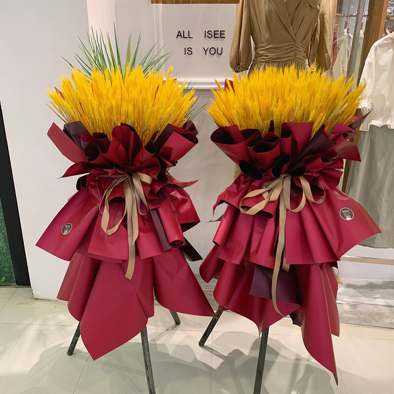 花材: 400支大麦,红色欧雅纸多层高领包装,金色缎带束扎。