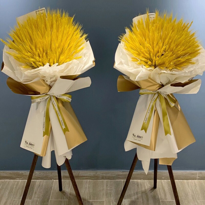 花材: 350支大麦,手揉纸高领内衬,金色双面纸外包,同色系花结。