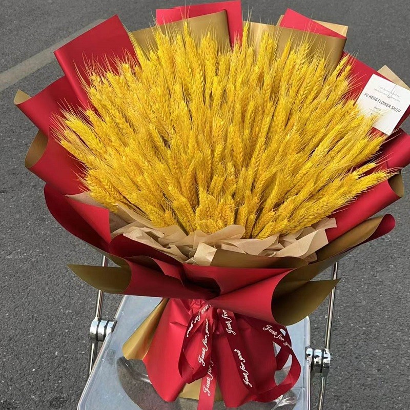 花材: 500支大麦,香槟色手揉纸内衬,红色双面纸外包,同色系花结。