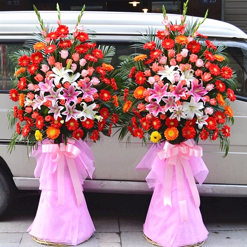 送的快,包装精美,比其他人送的花篮漂亮多了,而且花还特别新鲜,没有瑕疵,很赞