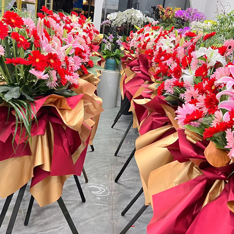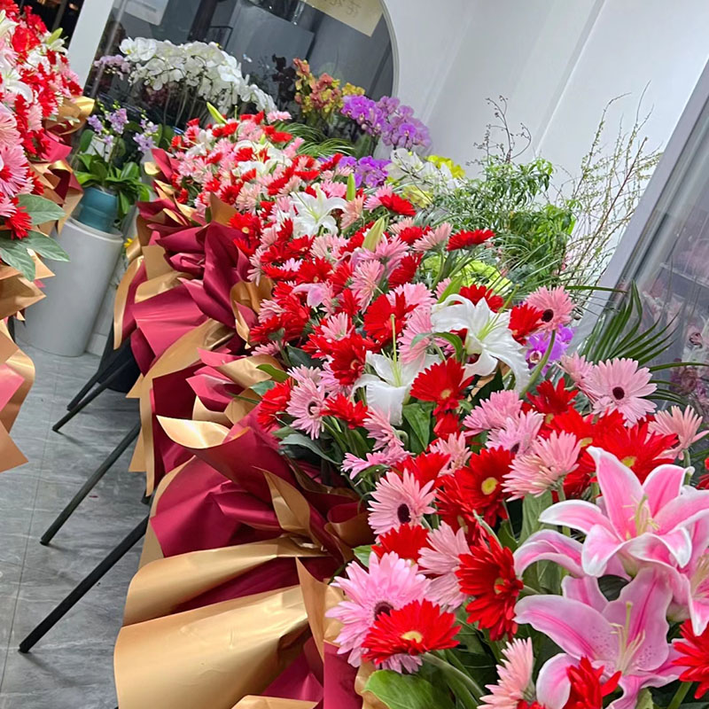 卖家非常守信,按我指定的时间准时送到,花篮也挺好,新鲜,花也多,贺词字也写的挺好的,能看出很用心。
