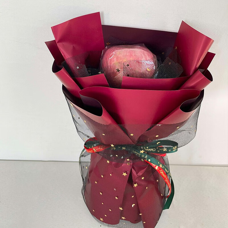 【平安夜晚-小花束零售可送】1个苹果,黑色网纱内衬。