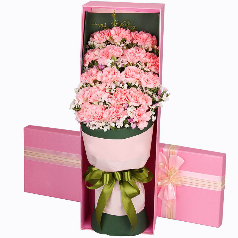【真诚祝福】19支粉色康乃馨,搭配石竹梅。