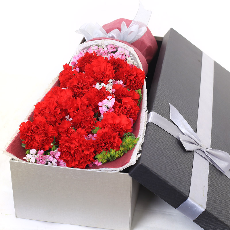 【生活无限美】19支红色康乃馨,搭配适量石竹。