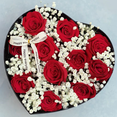 【嫣然一笑】11朵红玫瑰,1个蝴蝶结装饰花面,满天星丰满间插。