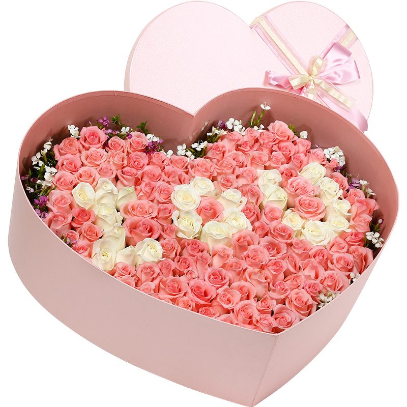 【IOU-I Love You】99支精品混色玫瑰(白玫瑰、粉玫瑰),搭配适量粉色石竹梅。