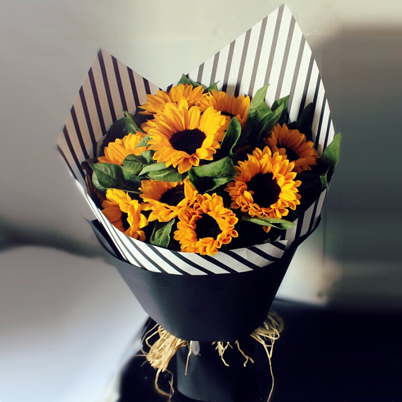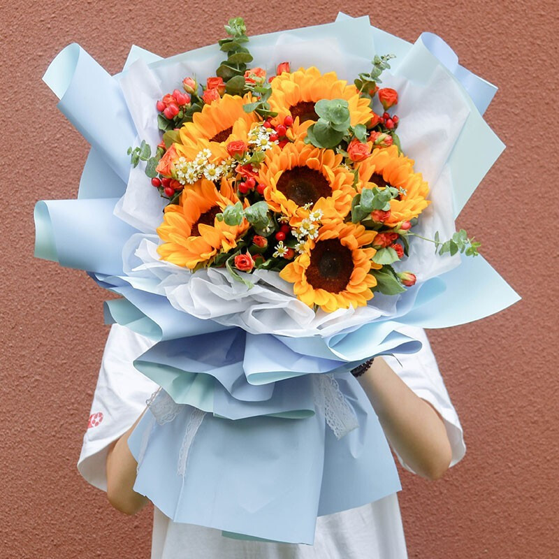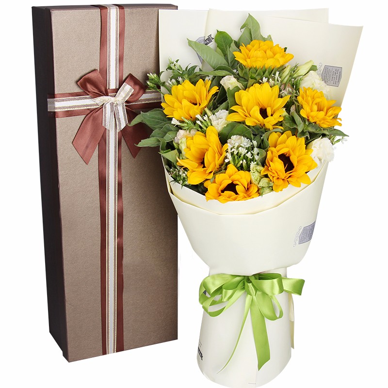 【信仰】9支精品向日葵,搭配绿叶丰满装饰。