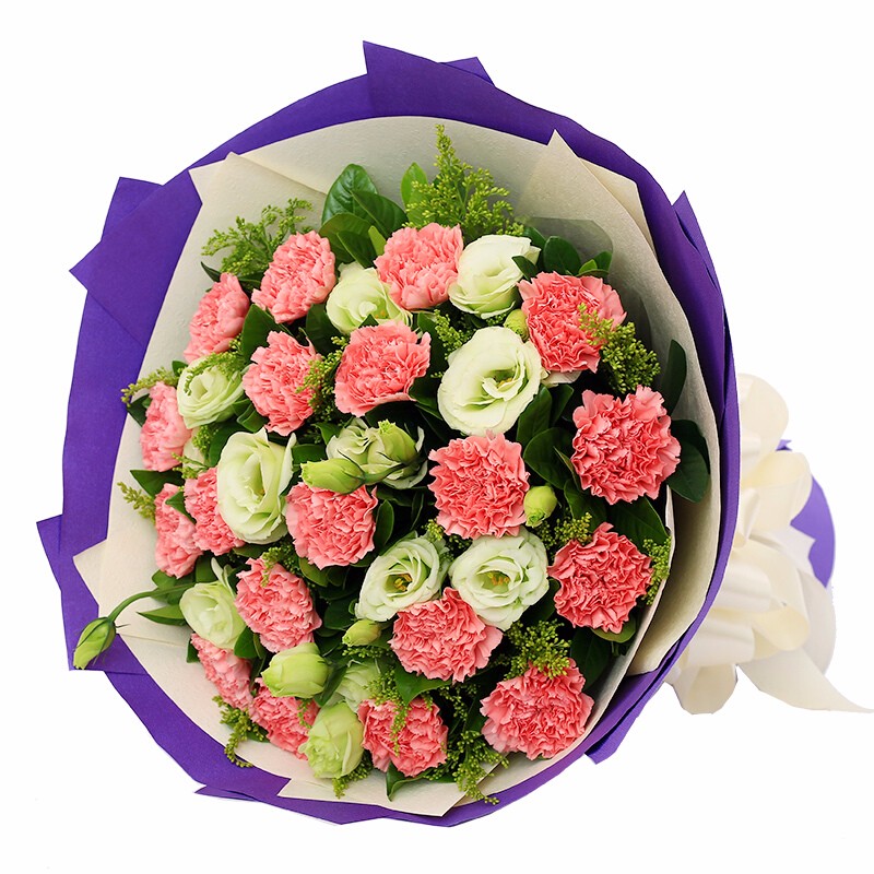 【祝福快乐】19支粉色康乃馨,搭配适量7支桔梗、绿叶。