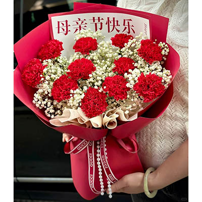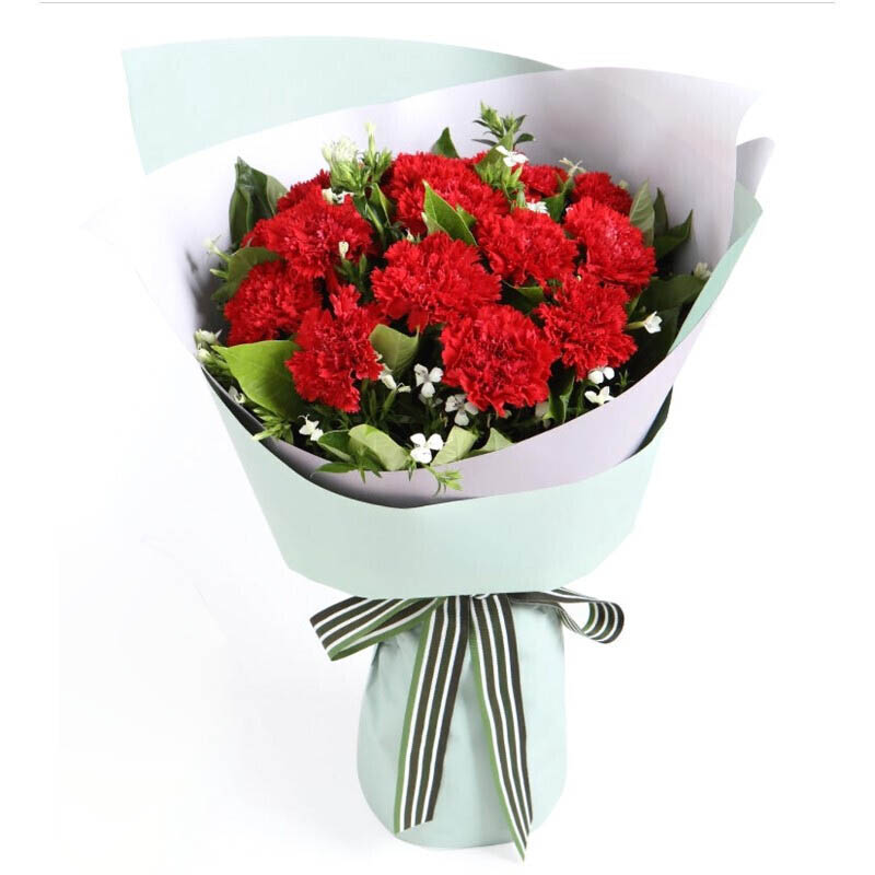 【心怀感恩】11枝红色康乃馨,搭配白色满天星丰满间插。