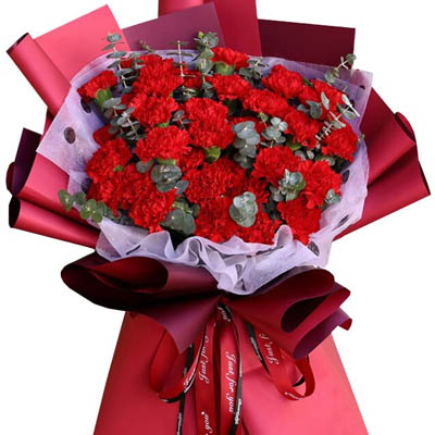 【温馨祝福】33朵精品康乃馨,搭配尤加利叶装饰。