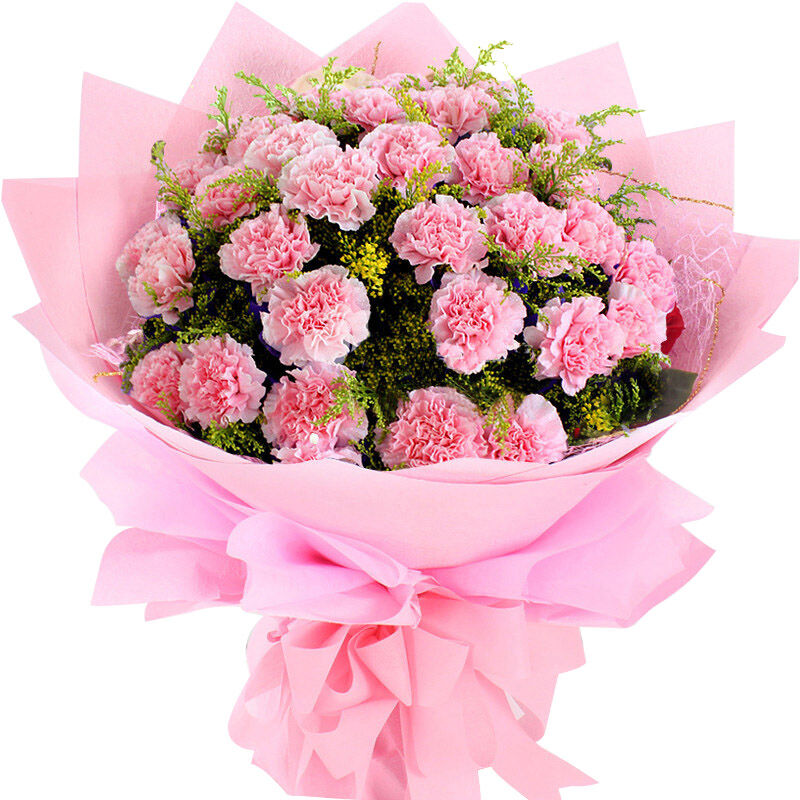 【真诚祝福】19支粉色康乃馨,搭配石竹梅。