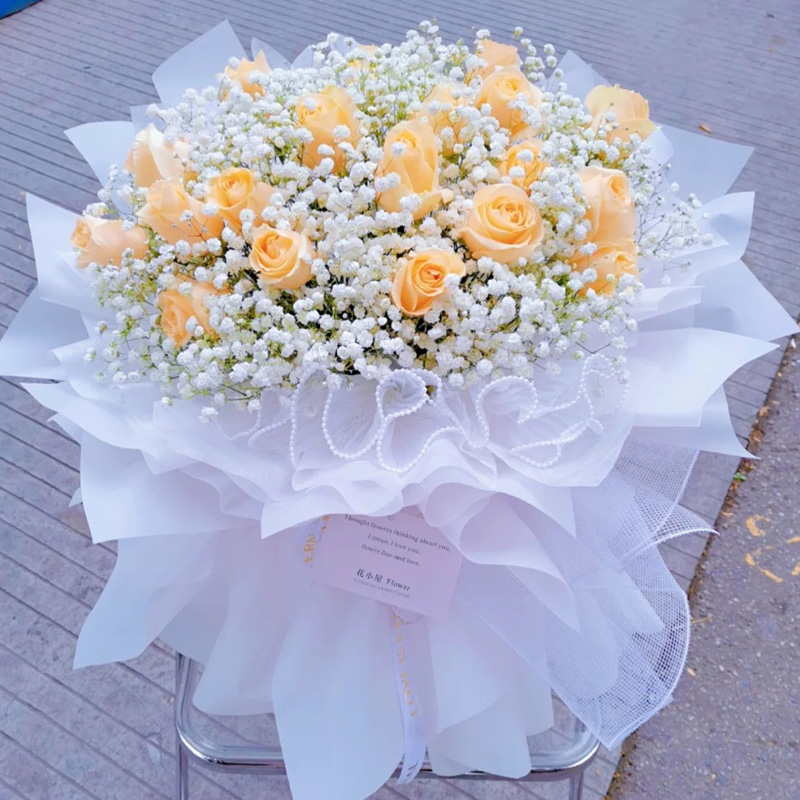 【真情告白】19朵香槟玫瑰,搭配满天星丰满装饰。