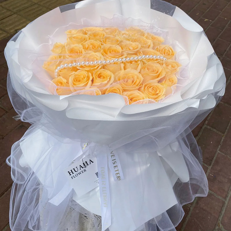 【恋恋风情】33朵香槟玫瑰,珠链装饰花面。