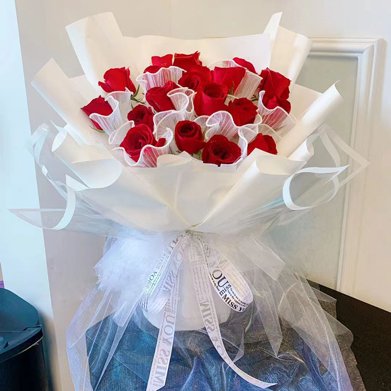 【每天的你】19支精品红玫瑰,波浪纱穿插花间装饰。