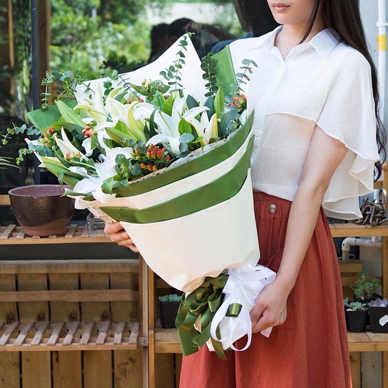 【情深】精选16朵香水白百合,新鲜黄莺点缀。