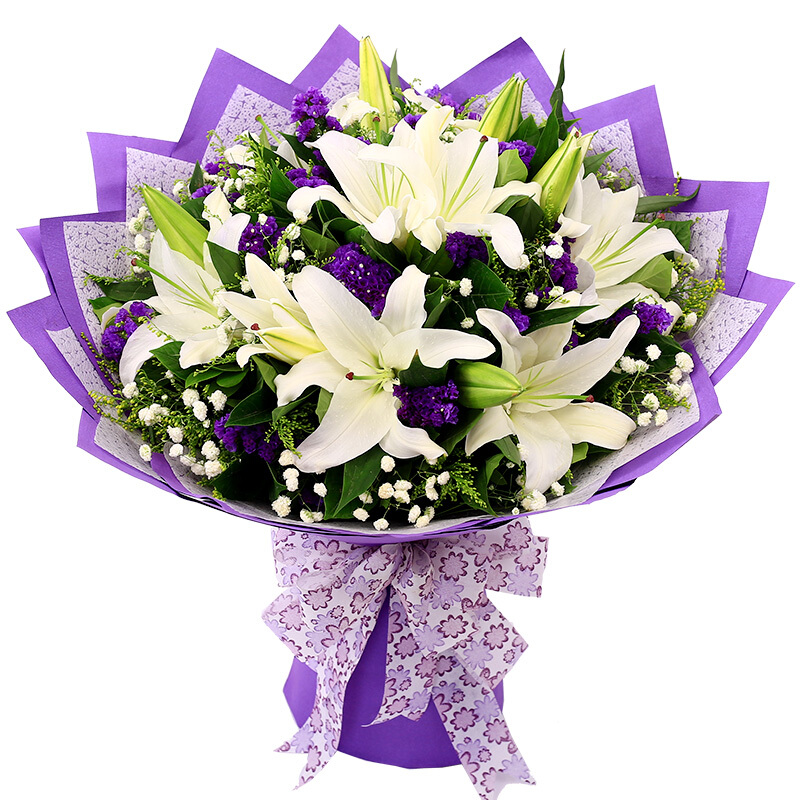 【岁月如歌】精心挑选15朵香水百合,搭配满天星,黄莺,勿忘我。