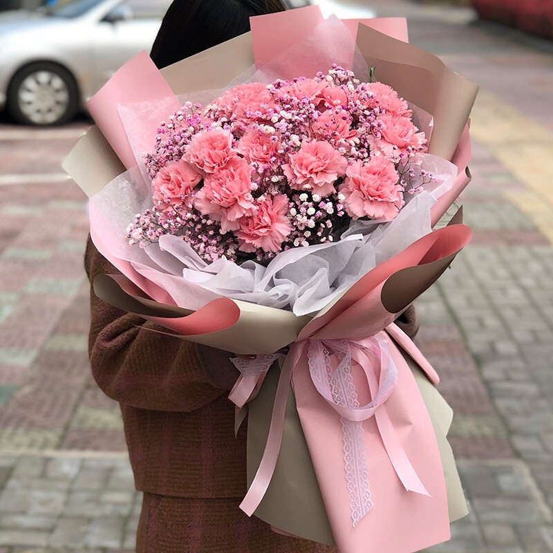 【山高云阔】19朵粉色康乃馨,粉色满天星点缀。