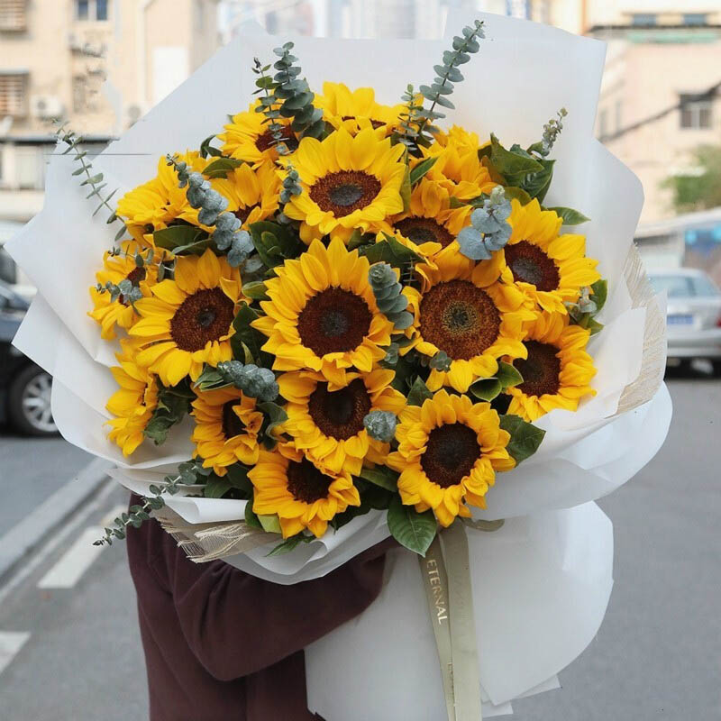 【尼罗河花园】精选21朵向日葵,搭配尤加利叶装饰。