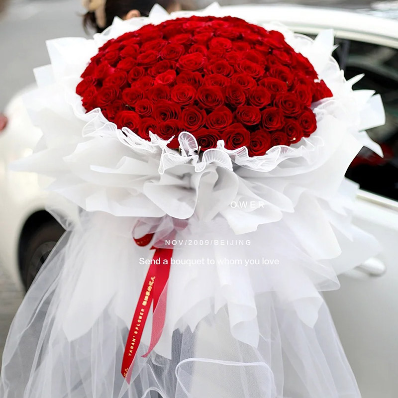 【悠悠我心 】 99支戴安娜玫瑰,白色满天星丰满围边