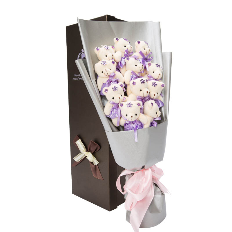 【爱你一生一世】66只可爱小熊公仔,包成圆形花束。