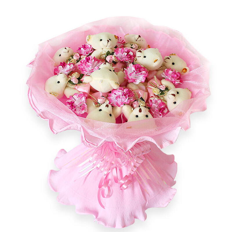 【欢声乐语】9只可爱粉色小熊,5支粉玫瑰。