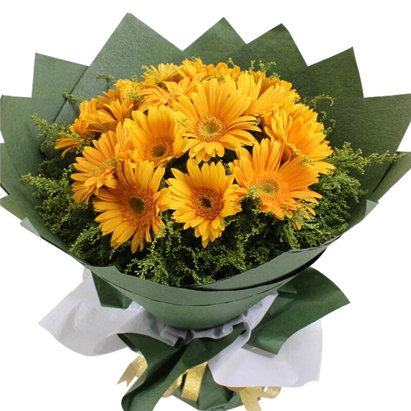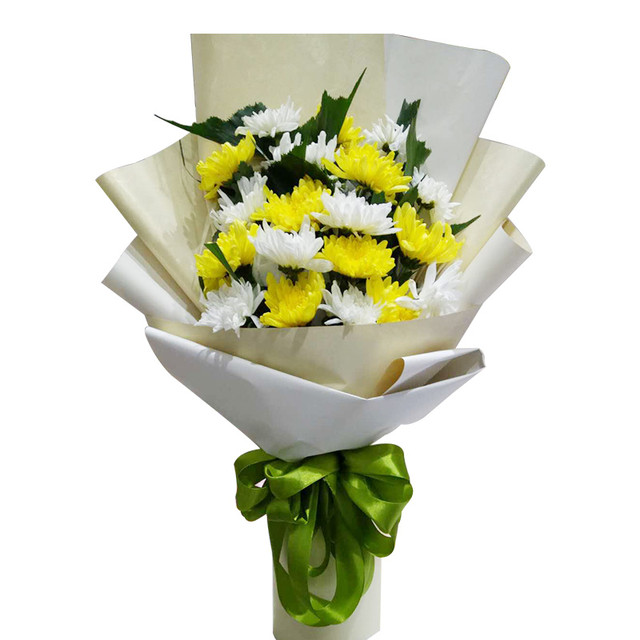 【倍思亲】19朵黄菊花、白菊花混搭,绿叶搭配