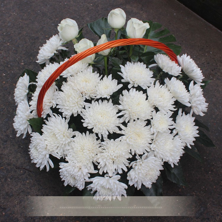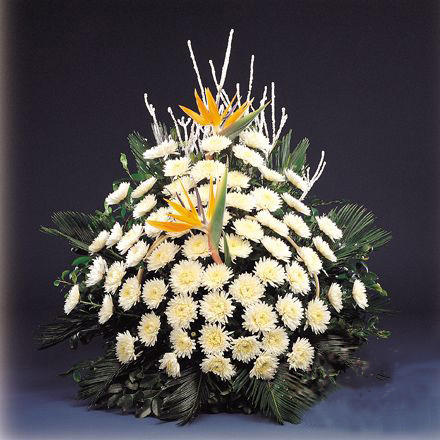 【遥寄相思(祭奠花篮)】 60朵白菊,2支天堂鸟,散尾葵等