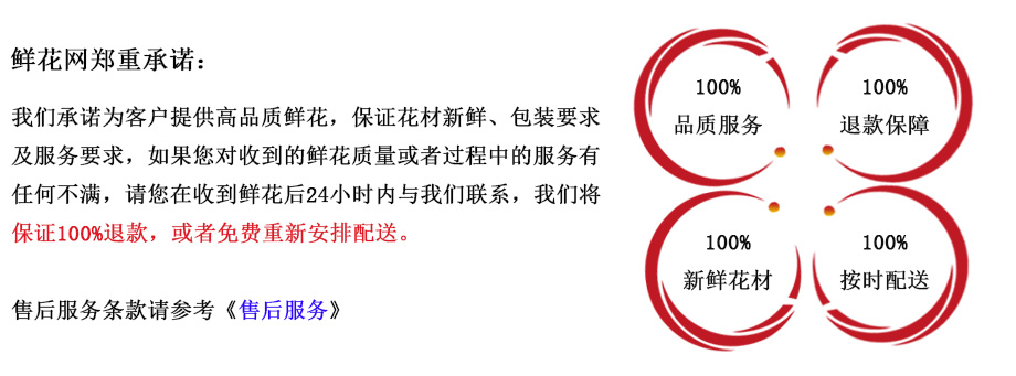 备注: 鲜花产品您至少应提前3小时下订单,我们保证按时送达; 为了能够有充分的时间准备,我们建议您尽量提前一天以上预定。