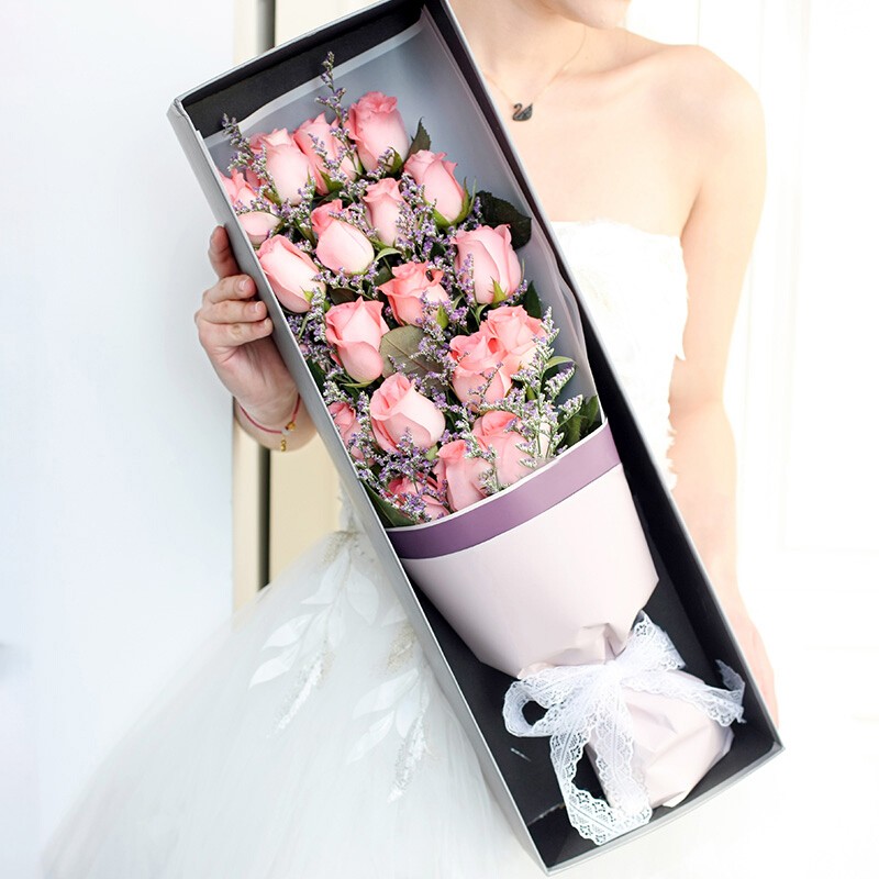 花材: 19支精品粉玫瑰,水晶草装饰。