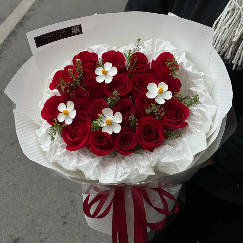 包装: 白色手搓纸内衬,白色硬纸外包,透明玻璃纸最外围装饰,小香风包装,红色大花结。