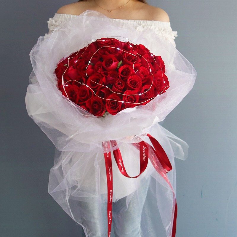 包 装:白色网纱+白色雾面纸包装,红色英文缎带束扎。