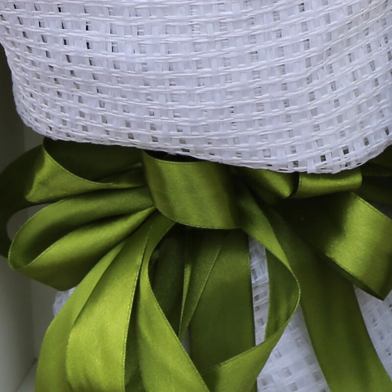 包 装:白色格子网包装,搭配绿色丝带,长方形礼盒装。