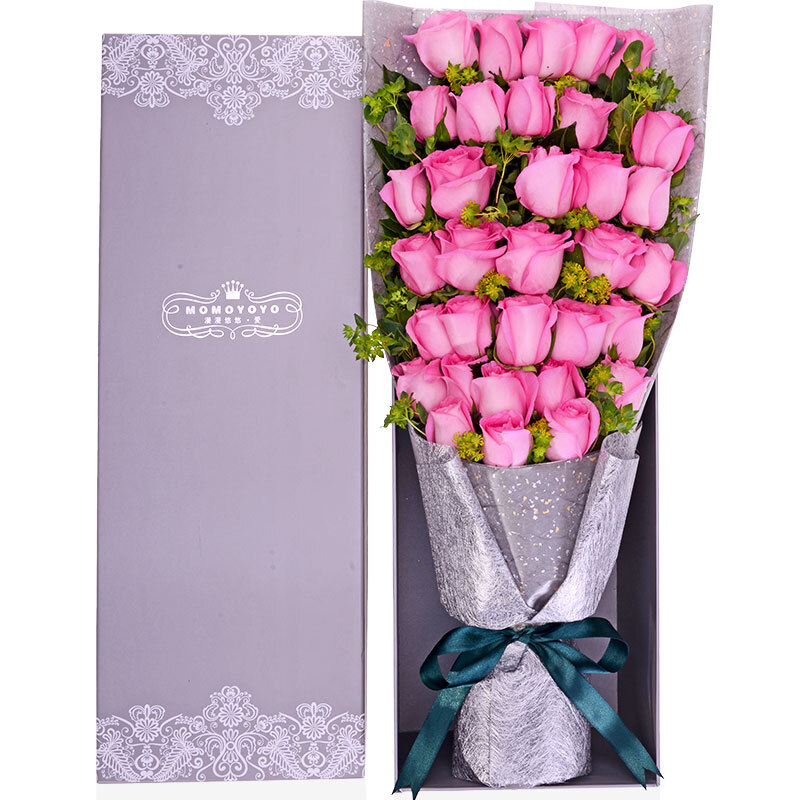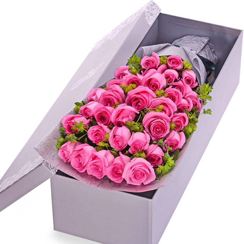 花 材:33支精品粉玫瑰,搭配适量叶上黄金。