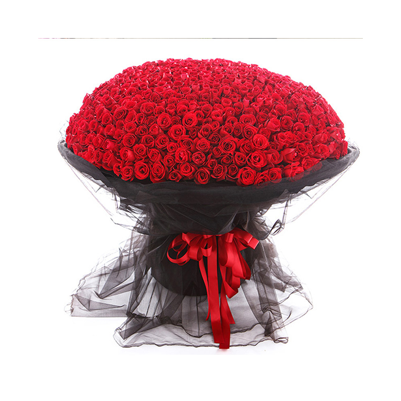 花 材:精选520枝红玫瑰,球形立体包扎。