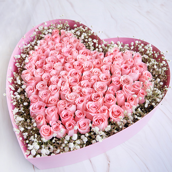 花材: 99支戴安娜玫瑰,白色满天星丰满围边