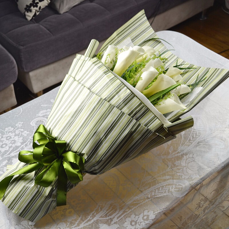 花 材:16朵白色马蹄莲,搭配黄莺、绿叶(珍贵 稀少花材,请提前1-3天预订或咨询客服)。