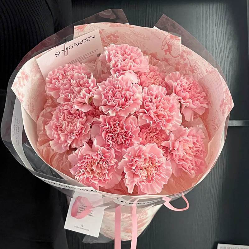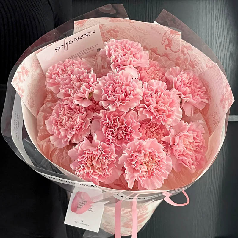 包 装:粉色小香风包装,浅色纸内衬,粉色花纹纸外包(可替换类似纸),玻璃纸最外层装饰,粉色花结。