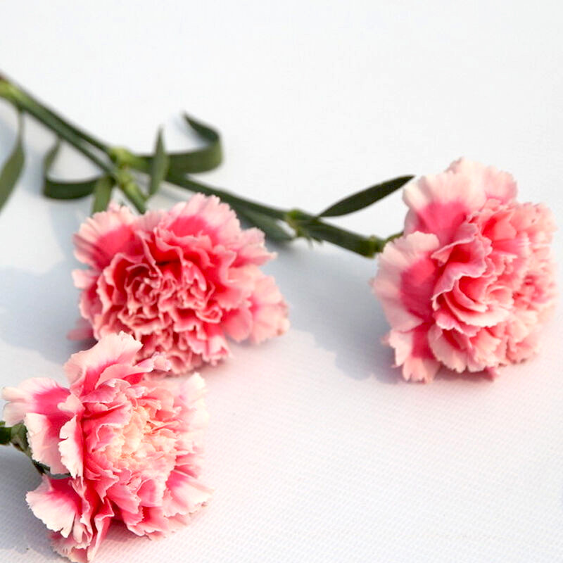 花 材:19支粉色康乃馨+1支多头白百合,搭配适量叶上黄金、石竹梅。