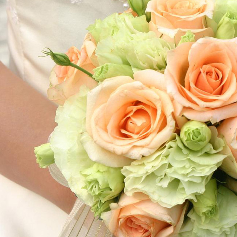 包装: 9支香槟玫瑰,搭配适量浅绿色桔梗。