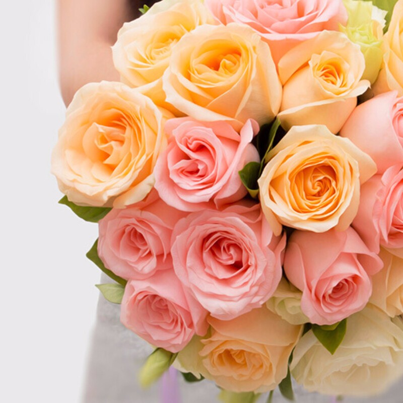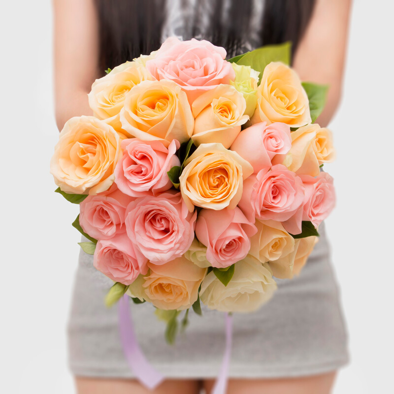 包 装:精选21朵香槟玫瑰、粉玫瑰,栀子叶、桔梗点缀。