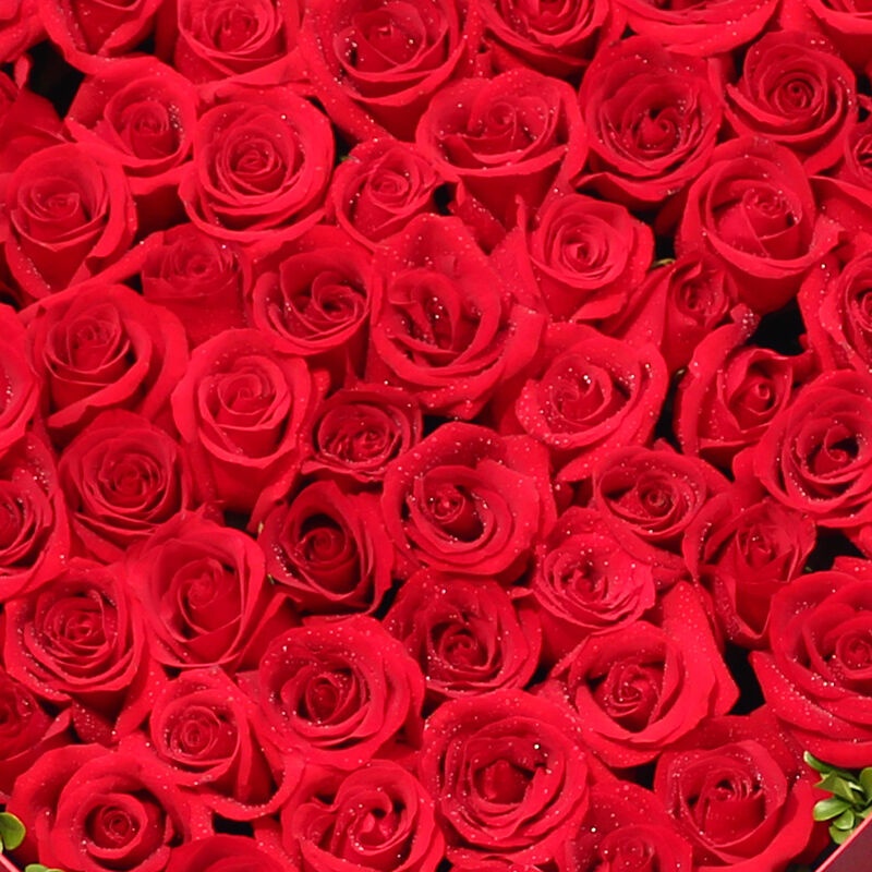 花 材:精品红玫瑰99支,绿叶适量点缀。