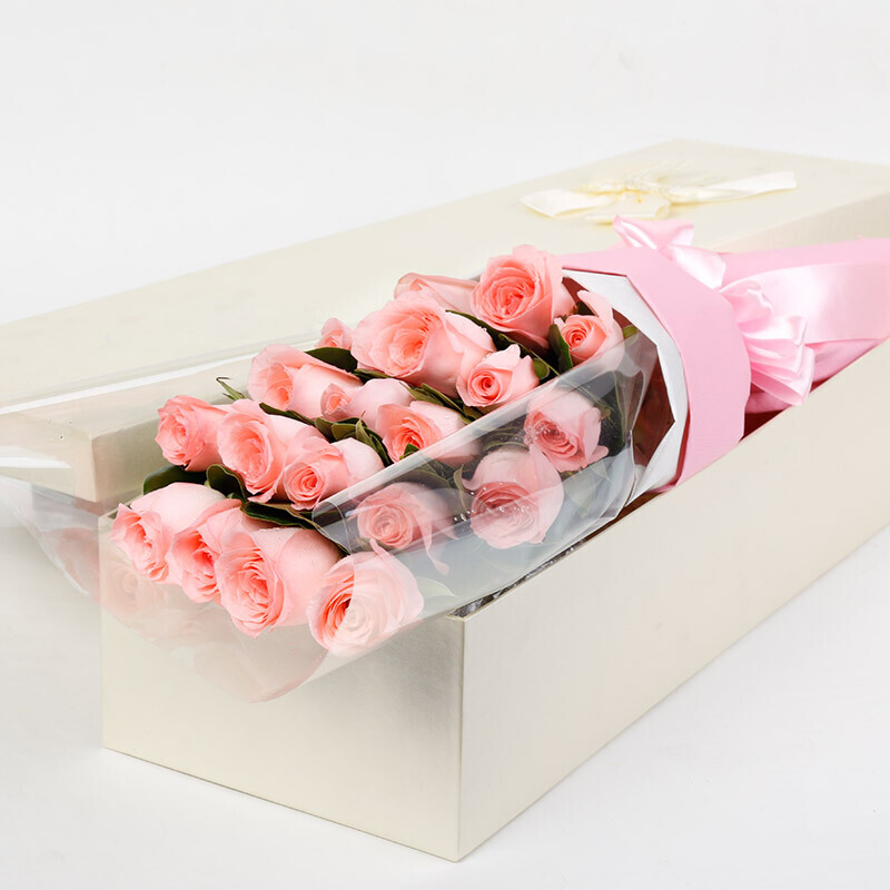 花 材:精选19枝戴安娜玫瑰,间插绿叶。