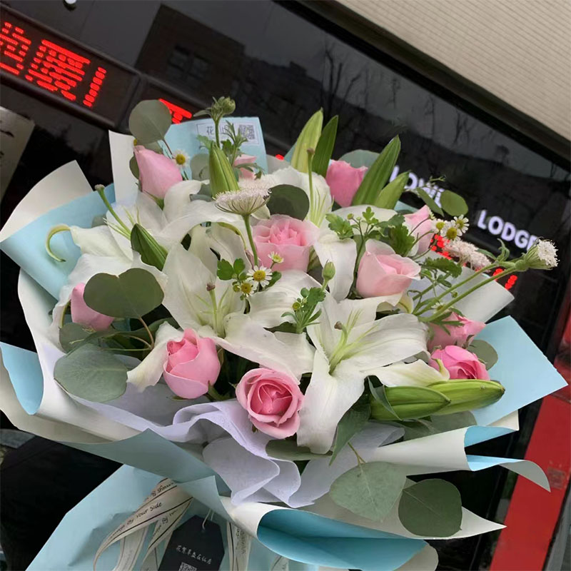 鲜花很新鲜很漂亮, 她很喜欢,谢谢卖家