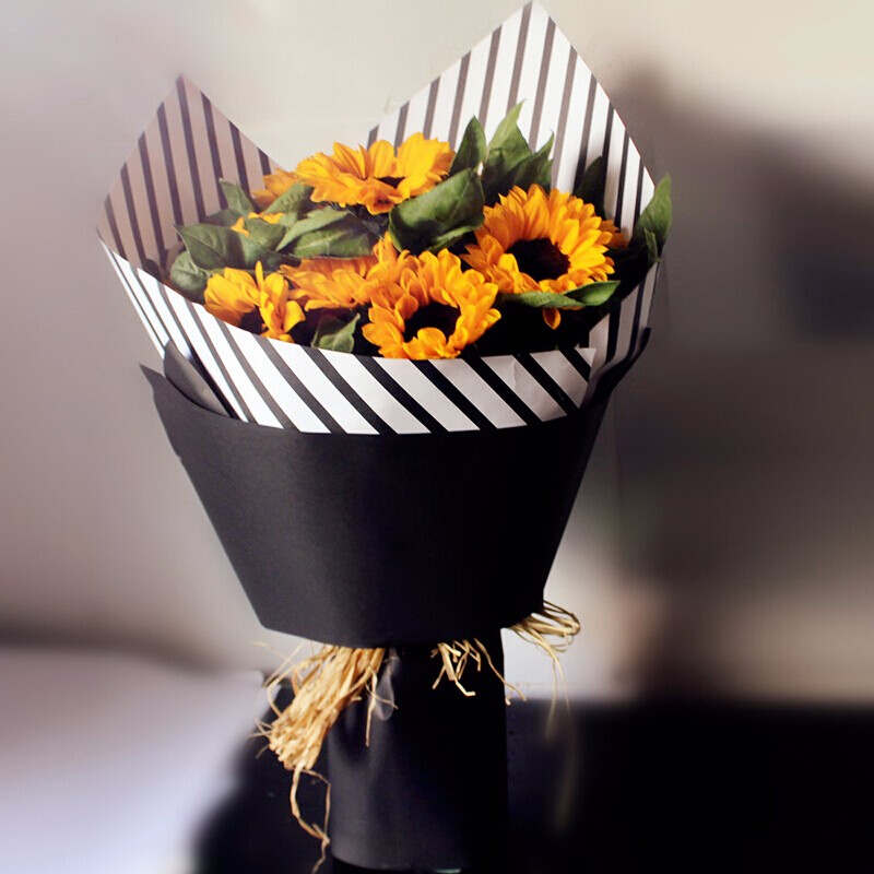 包 装:条纹纸尖角内衬,黑色硬皮纸外包,拉菲草扎结。
